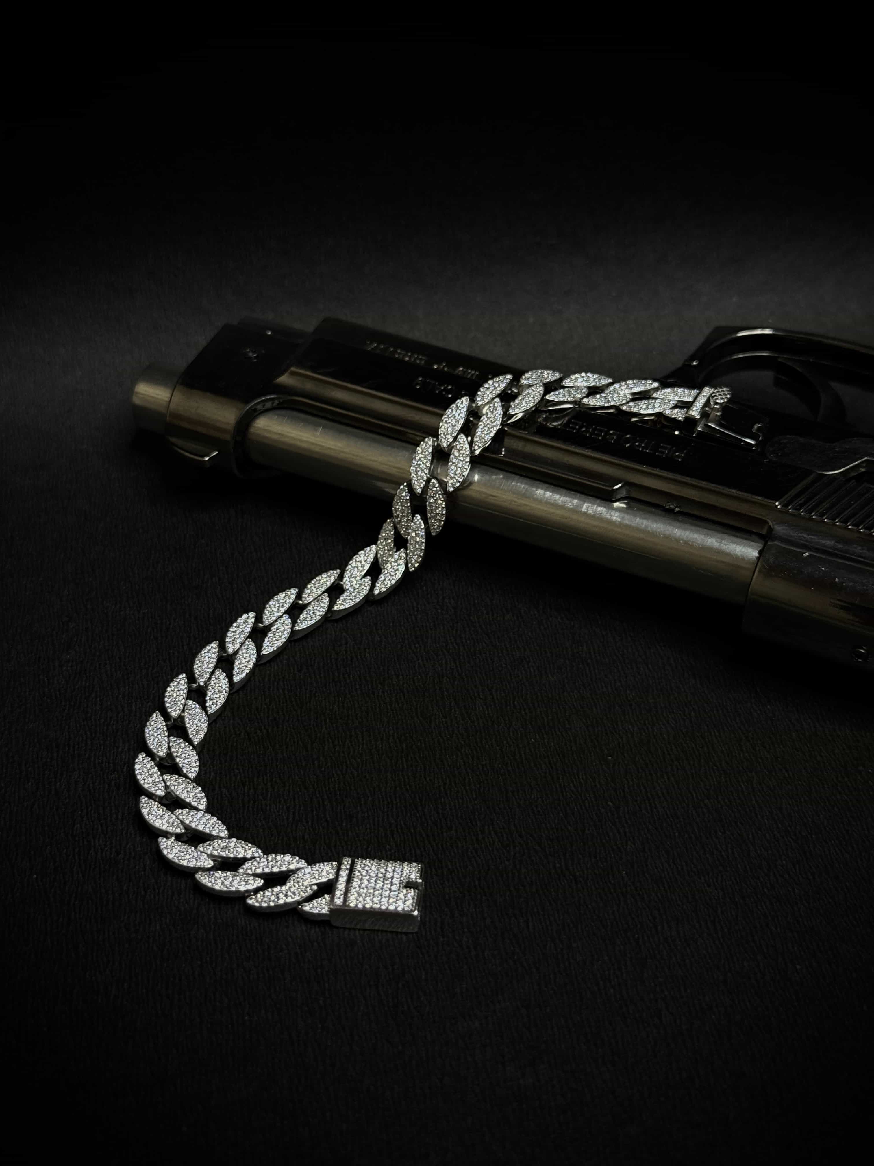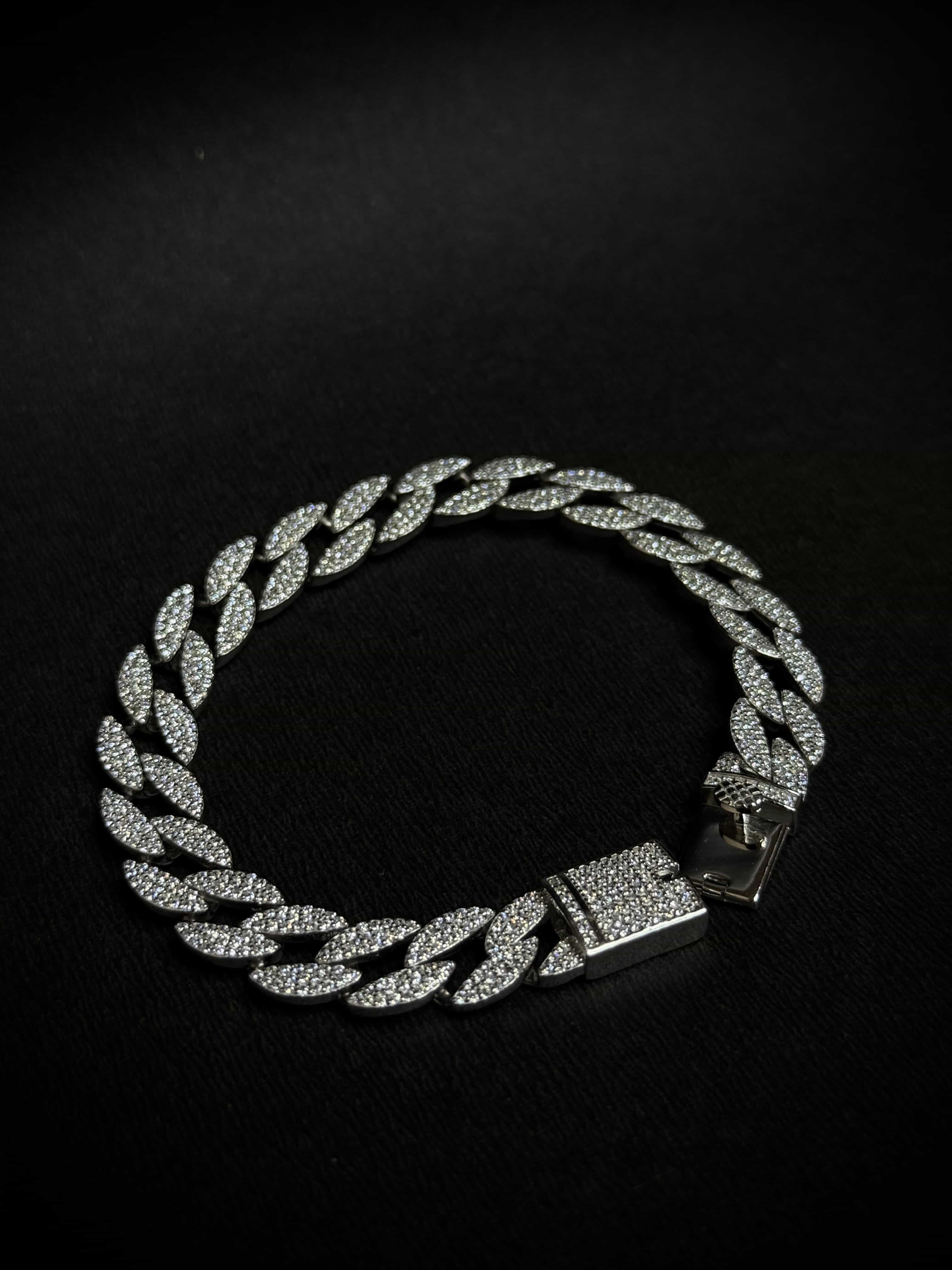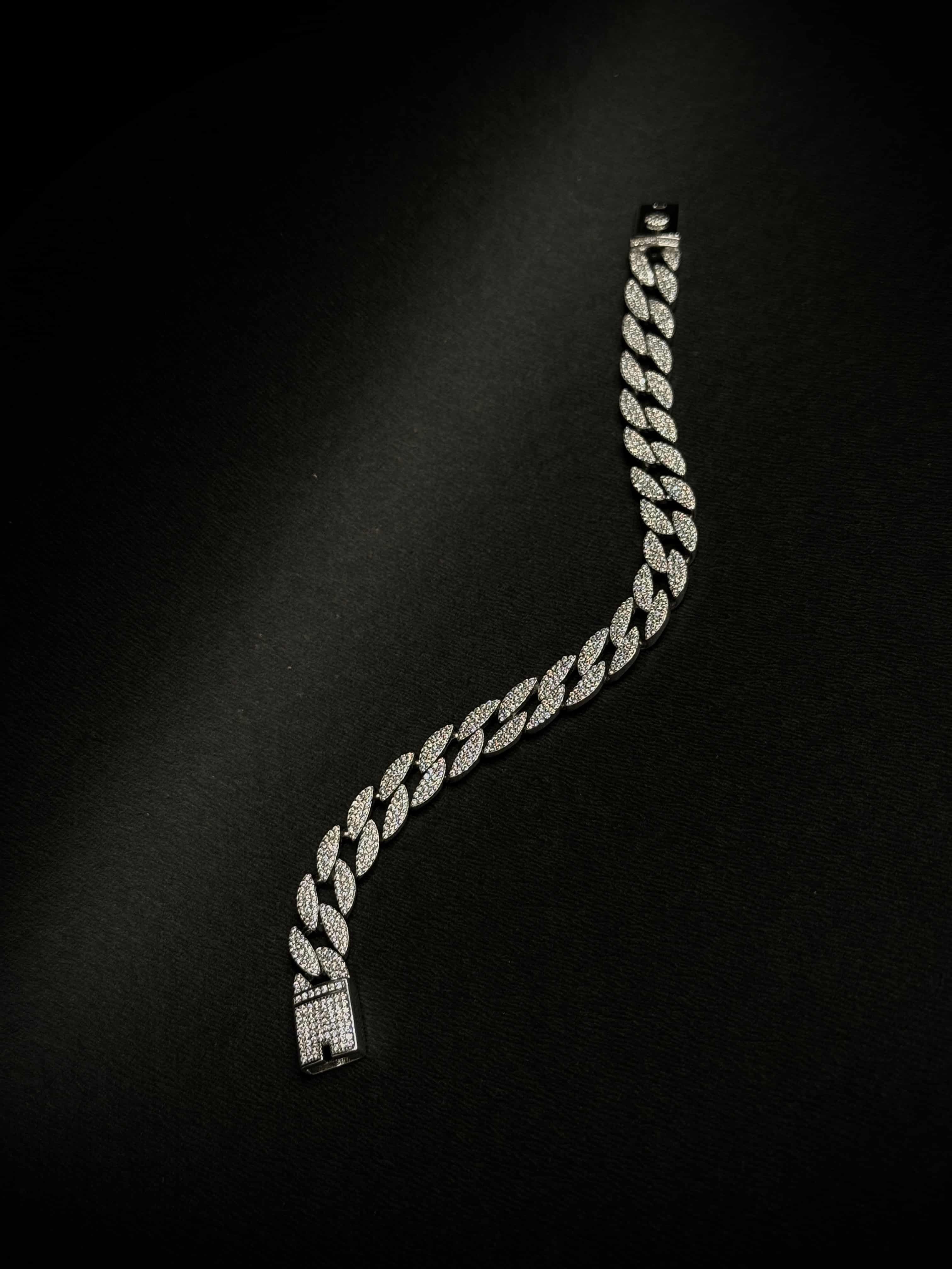 Turn heads with timeless luxury. Crafted from premium 925 sterling silver, this men's bracelet is fully iced out with high-grade simulated diamonds that shimmer from every angle. Designed for bold style and undeniable presence, each link is meticulously set with handset stones for maximum brilliance.